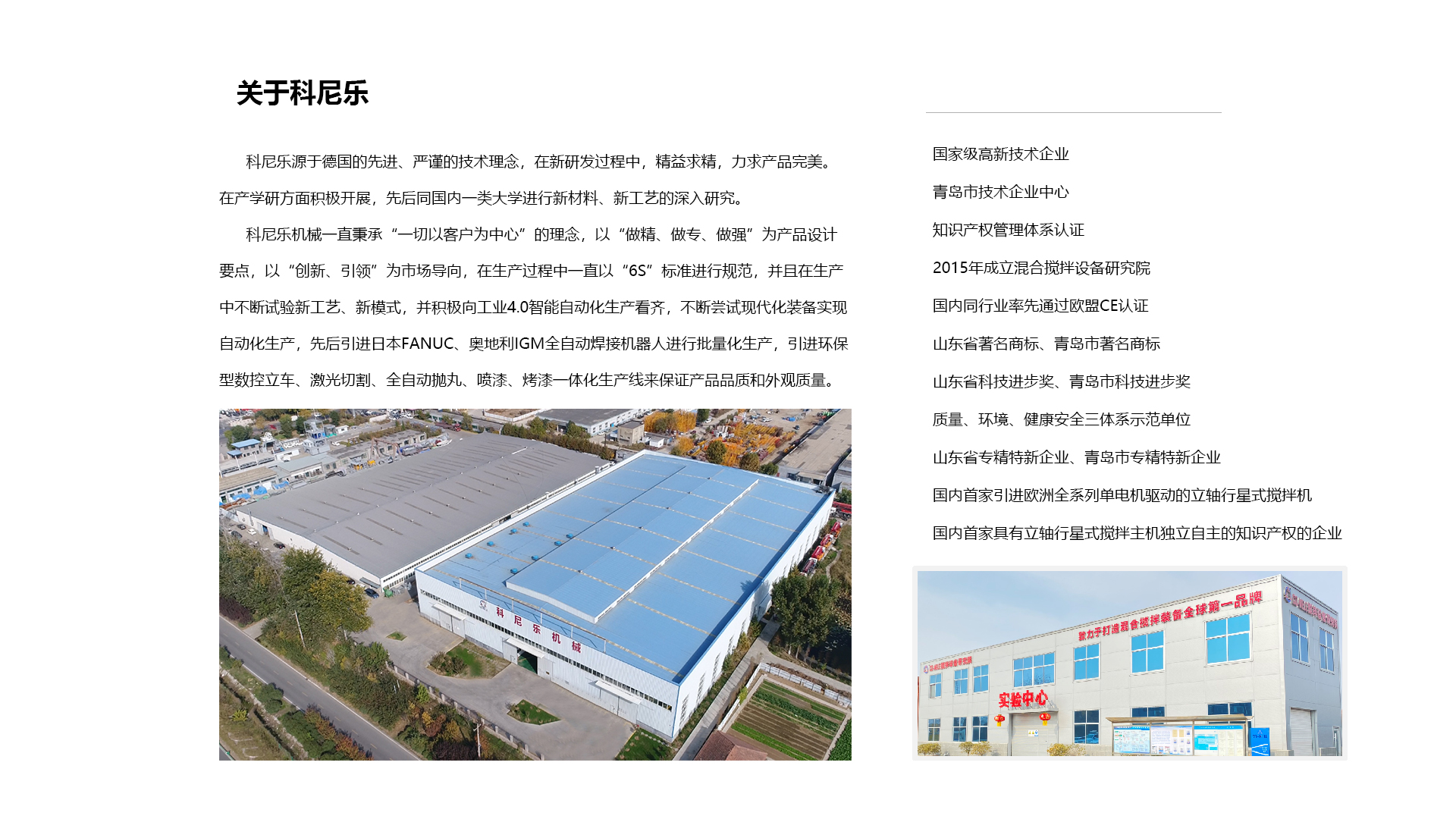 青島科尼樂機(jī)械設(shè)備有限公司始創(chuàng)于2004年,屬國(guó)家科技創(chuàng)新企業(yè),山東省制造業(yè)單項(xiàng)冠軍企業(yè)、專業(yè)致力于高端混合攪拌設(shè)備、造粒設(shè)備的研發(fā)、生產(chǎn)與銷售,目前已發(fā)展成為我國(guó)專業(yè)化,高實(shí)力的攪拌設(shè)備制造企業(yè)之一。