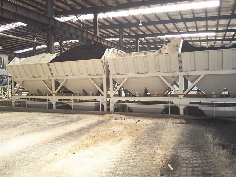 骨料配料一般采用集成式配料機,主要包括儲料倉和稱重皮帶兩部分。