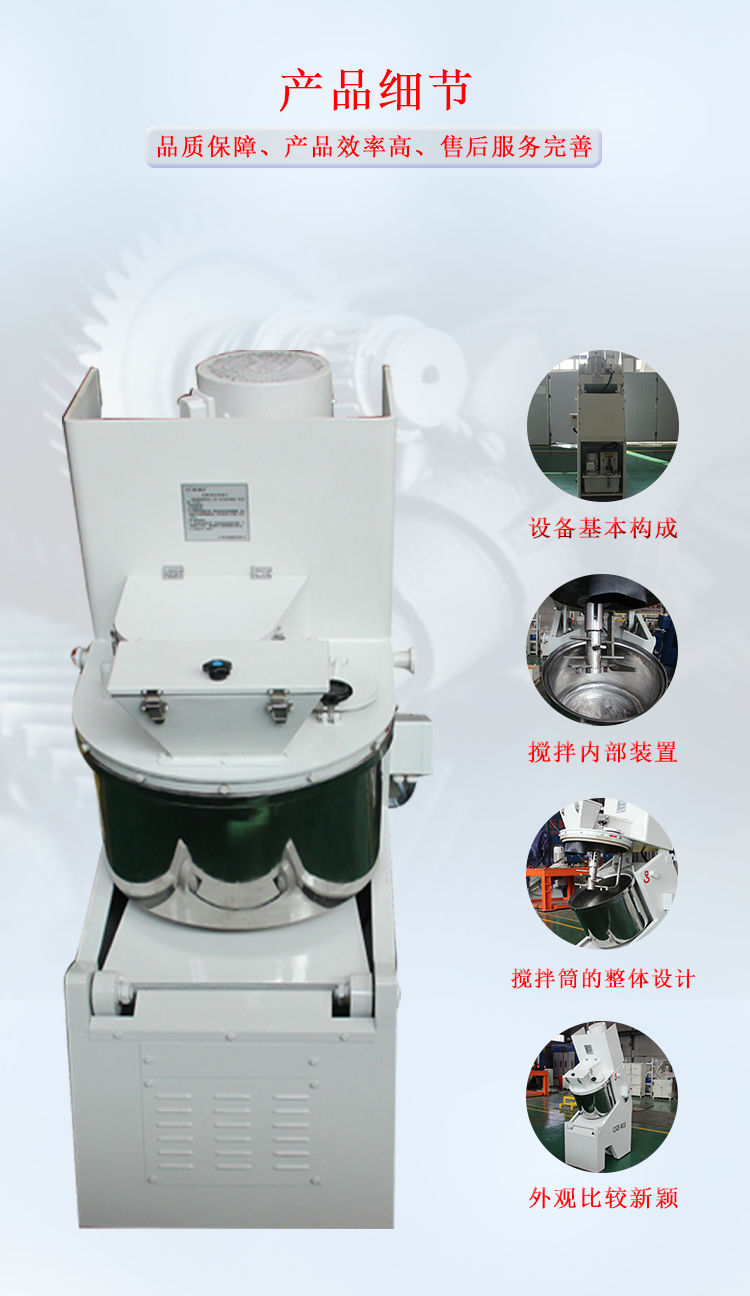 6.混料機(jī)采用全封閉式結(jié)構(gòu),多重密封,運(yùn)行時幾乎無粉塵;
